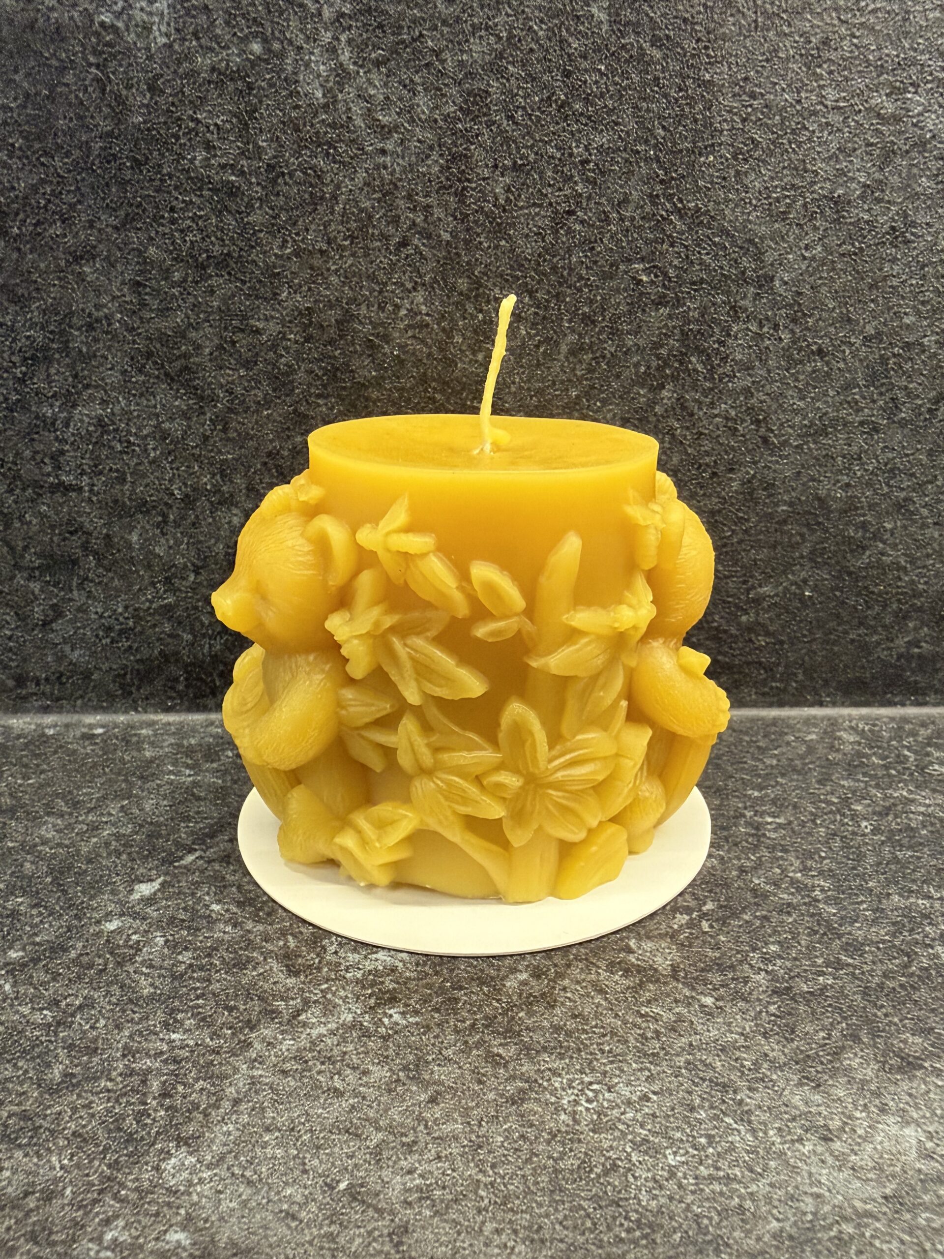 Käsitööna valatud küünal 100% puhtast Eesti mesilasvahast. Ei sisalda parafiini, sünteetilisi lisaaineid, värvaineid ega kunstlikke lõhnaaineid.